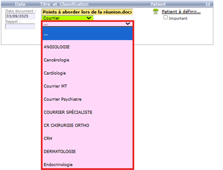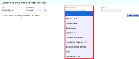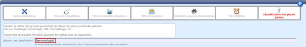 • La classification ajoutée sera disponible à l'importation d'une nouvelle pièce jointe, et comme critère de recherche sur un dossier patient :