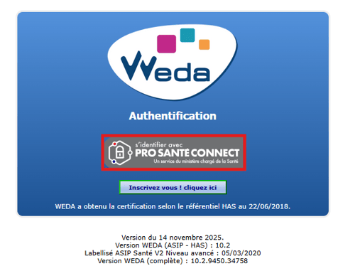 - La connexion via Pro Santé Connect est désormais active et liée au compte WEDA. Toutes les connexions ultérieures se feront sans la confirmation d'association.
