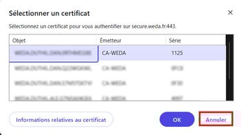 - ⚠️Important : A cette étape, si une fenêtre de sélection de certificat s'affiche, cliquer sur "annuler" pour retrouver l’écran précédent et le bouton Pro Santé Connect :