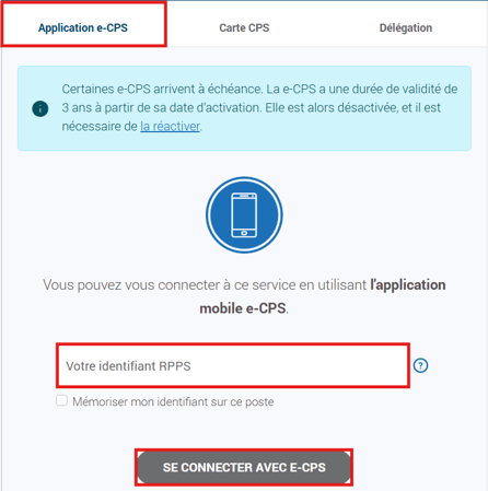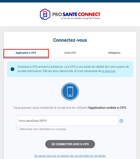 - Cela nécessite l’activation de l'application sur un téléphone portable et l'association à une carte CPx existante ou à un numéro de RPPS ou RPPS+ :