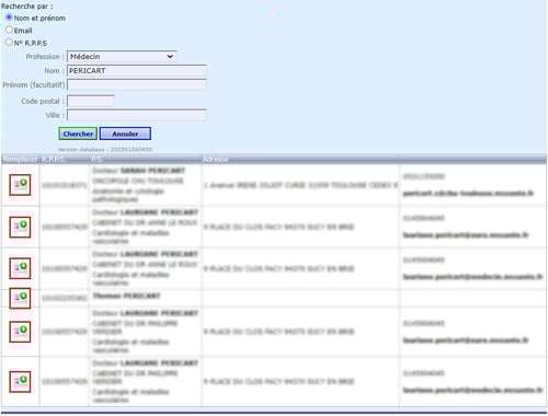- La recherche dans l’Annuaire Santé se fait par nom et prénom, par adresse mail (une adresse sécurisée) ou par N° RPPS :