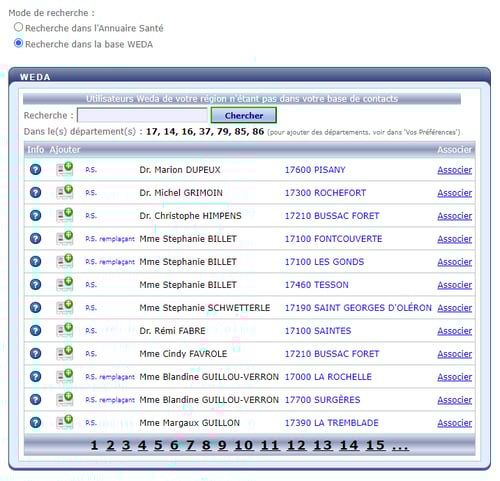 - L’affichage sera identique à la page de l'annuaire santé du chapitre précédent :