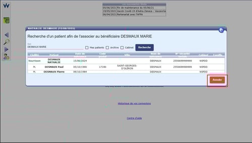 - Si un résultat correspondant au patient apparait, c’est que le dossier du patient est déjà existant au sein de la patientèle.