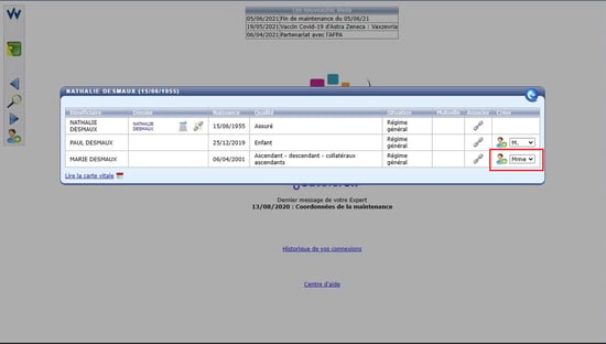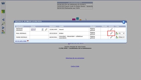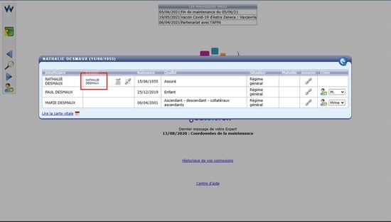 - Attention : Si un dossier patient est déjà rattaché au bénéficiaire de la carte Vitale, il ne sera pas nécessaire de créer un nouveau dossier mais simplement de cliquer sur le nom du patient pour accéder à son dossier :