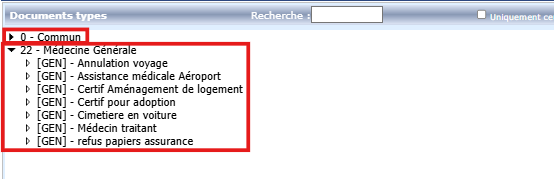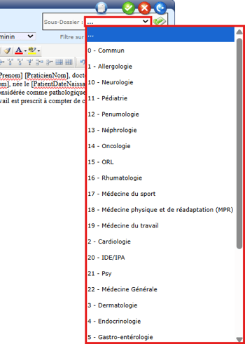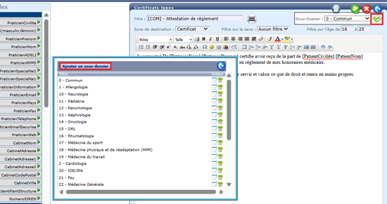 Le paramétrage des filtres et des sous dossiers permet d’organiser l’affichage des documents et formulaires types afin d’optimiser leur utilisation, en fonction du patient, et en fonction du praticien.