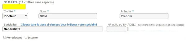 - Informations personnelles : Indiquer civilité, nom, prénom, spécialité ainsi que le numéro RPPS.