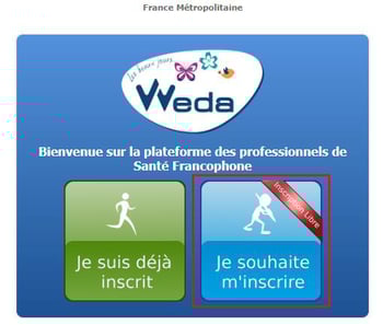 - Valider l'inscription : Entrer le code de référence et cliquer sur "Validez votre inscription". Le compte WEDA sera actif sous 1 à 2 jours ouvrables.