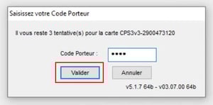 - Puis renseigner le code porteur :