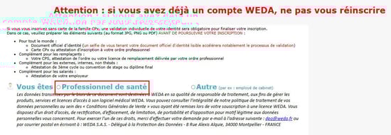 - Cliquer sur professionnel de santé :