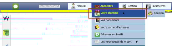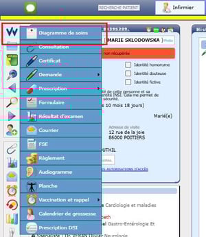 - Le menu W sur le dossier patient peut varier en fonction de la profession de l’utilisateur et donc proposer des items différents (ex : Le diagramme de soin pour les IDE)