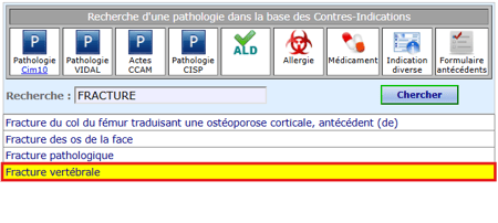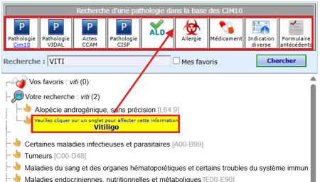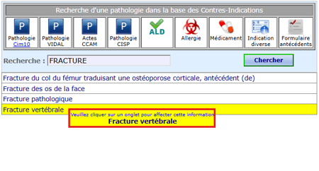 🔍La méthode de sélection des antécédents est la même dans tous les onglets à l’exception de l’onglet CIM10.