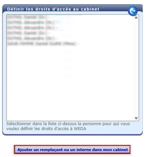 - Cliquer sur Ajouter un remplaçant ou un interne dans mon cabinet :