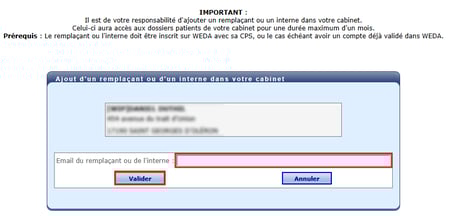 - Renseigner et valider l’adresse mails de connexion du remplaçant ou du stagiaire :