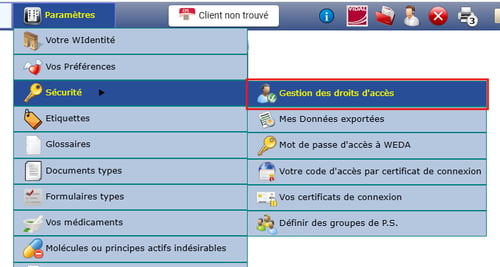 - Se rendre dans le menu "Paramètres", "Sécurité" puis "Gestion des droits d’accès" :