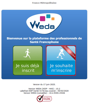 - Se connecter à secure.weda.fr (ou run.weda.fr pour Mayotte ou La Réunion) et cliquer sur "Je souhaite m’inscrire".