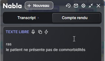 A l'heure actuelle, Nabla n’est pas encore intégré directement à WEDA. Il est cependant possible de l’installer en tant qu’extension de navigateur.