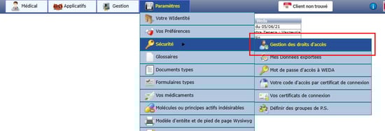 - Aller dans le menu "Paramètres", "Sécurité", "Gestion des droits d’accès" :
