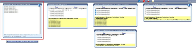 - Sélectionner un utilisateur dans l’encadré de gauche "Définir les droits d'accès au cabinet" :